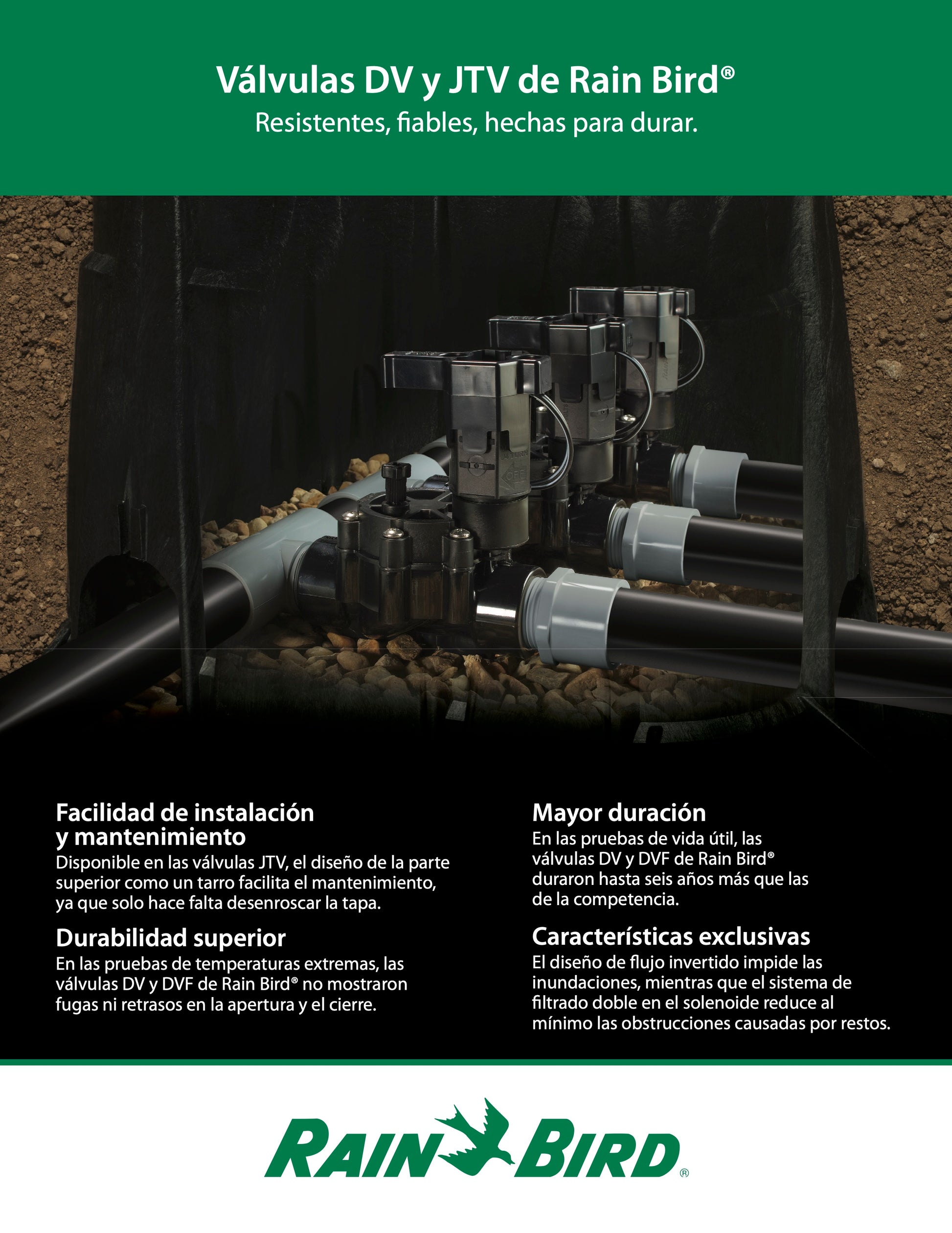 - Funciona en aplicaciones de bajo caudal y riego localizado cuando se instala un filtro RB y aguas arriba