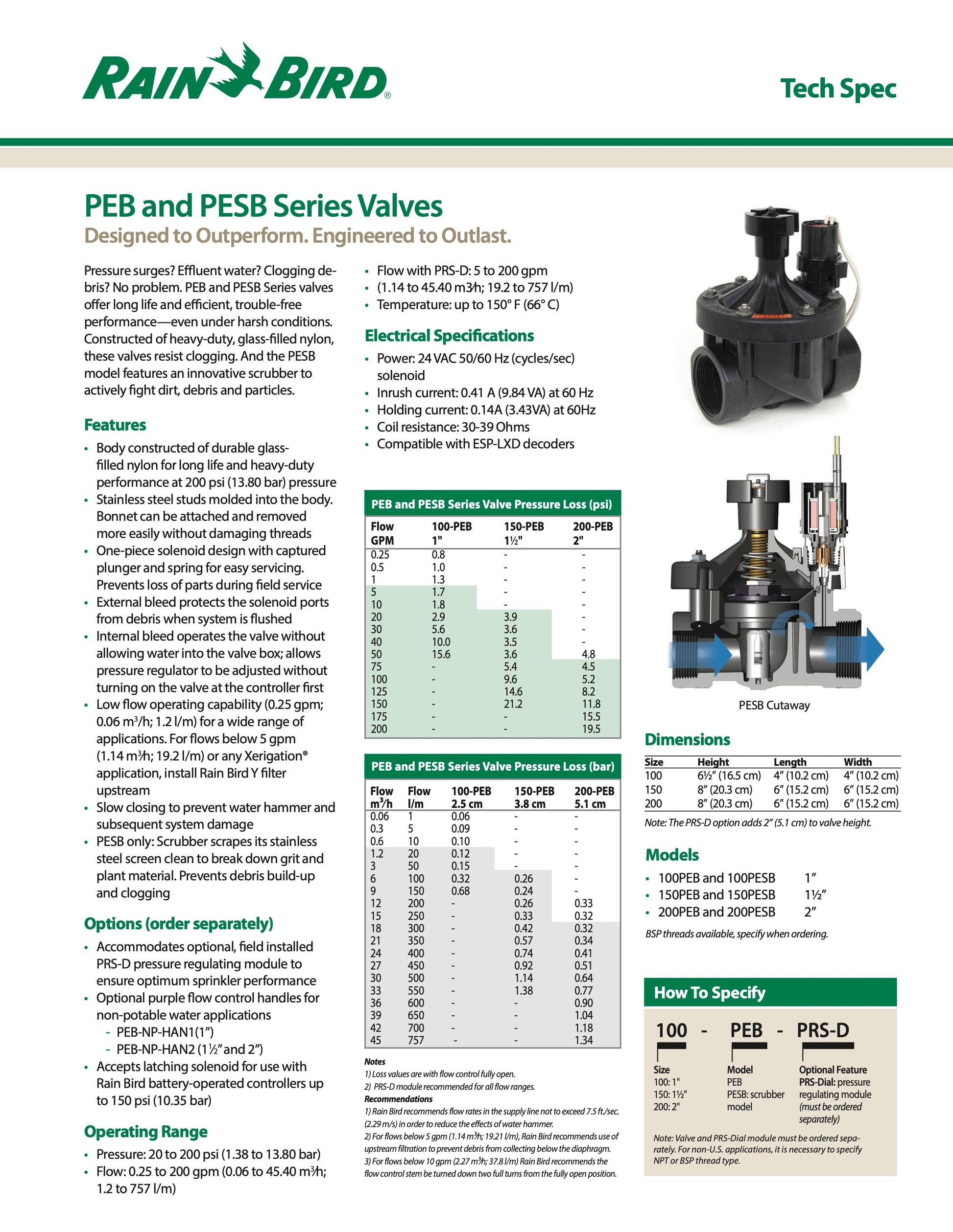 Ya sea que estés buscando mantener tu jardín residencial en perfectas condiciones o gestionar un sistema de riego a gran escala, la válvula eléctrica 150PEB de Rain Bird es la elección ideal para garantizar un rendimiento excepcional y una eficiencia máxima en tu sistema de riego. Confía en la calidad y la fiabilidad de Rain Bird para satisfacer todas tus necesidades de riego con la válvula 150PEB.
